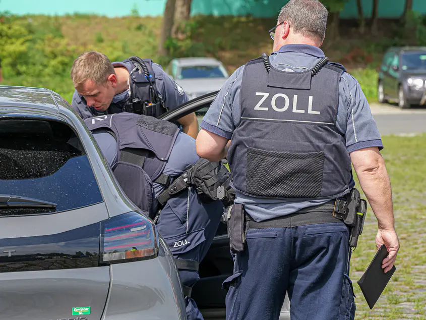 Kurz darauf stürzte ein E-Scooter-Fahrer vor ein Zollfahrzeug. Der Mann, ein Fahrlehrer, war alkoholisiert, verhielt sich aggressiv und leistete Widerstand gegen die Kontrolle.